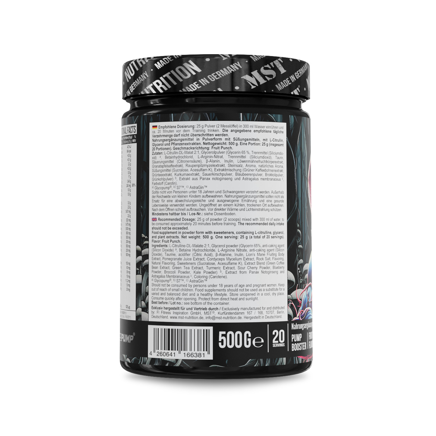 Order NEUROPUMP Mushroom Power 500g with Fruit Punch flavor by MST NUTRITION – a powerful caffeine-free formula for focus and endurance