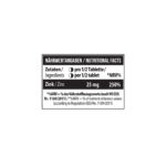 Contains 25 mg of zinc (as bisglycinate), which equals 250% of the Nutrient Reference Value (NRV) according to EU Regulation 1169/2011.