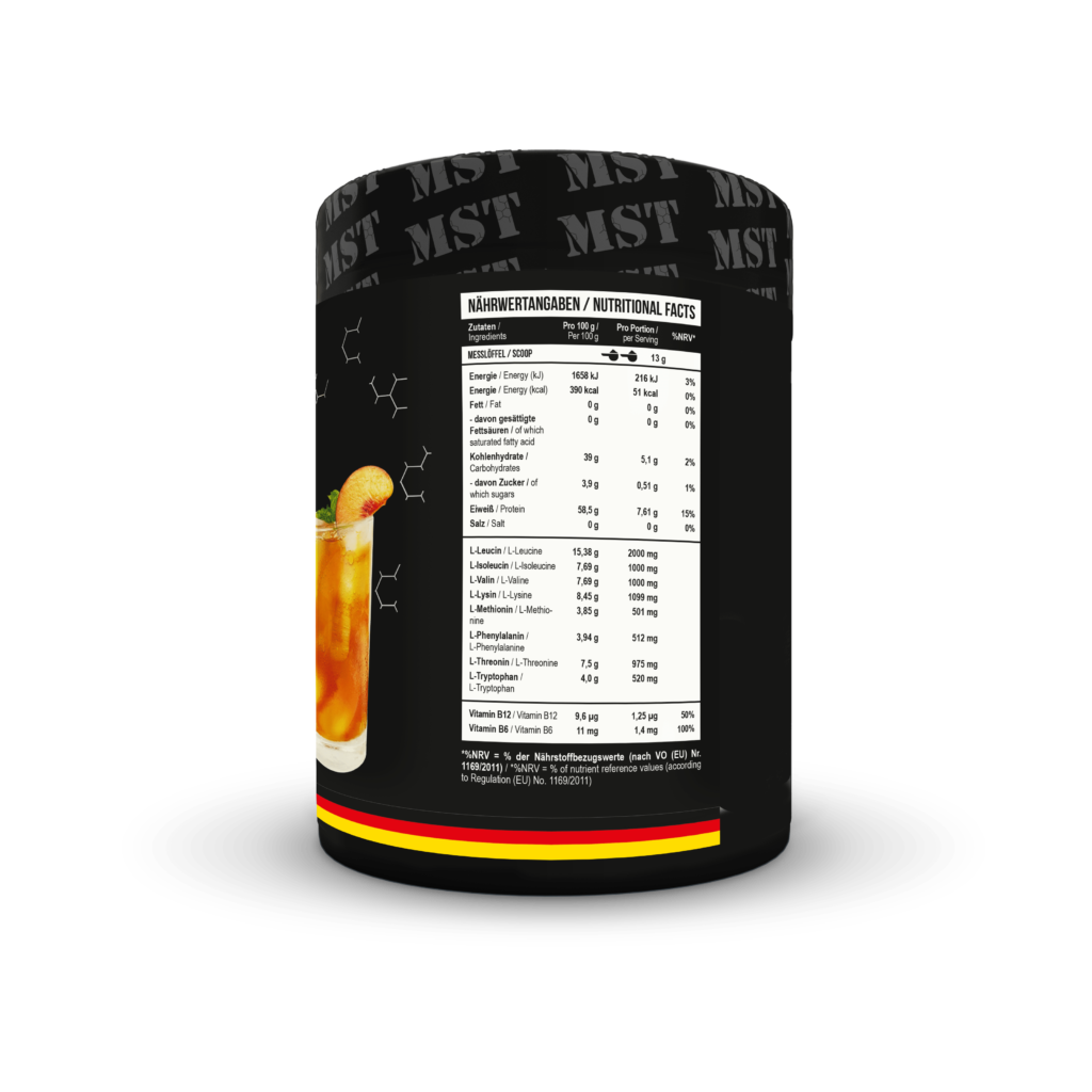 MST® BCAA&EAA Zero Персиковий🍑чай 80 порцій 1040 грамів – це комплекс, що складається з 8 незамінних амінокислот, доповнений вітамінами групи В. Ці речовини представляють високу цінність для організму людини, оскільки вони не можуть самостійно синтезуватися в нашому тілі, а значить повинні надходити ззовні з їжею або ж при допомозі спеціальних дієтичних доповнень.