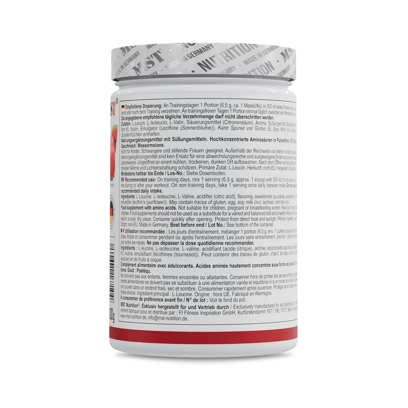 MST® BCAA Zero Кавун 1000 грамів (153 порцій) — це високоякісна формула амінокислот з розгалуженим ланцюгом (branched-chain amino acids), яка включає лейцин, ізолейцин та валін у перевіреній пропорції 2:1:1. Ці амінокислоти складають до 40% м’язової тканини та є ключовим фактором росту, відновлення й захисту м’язів.