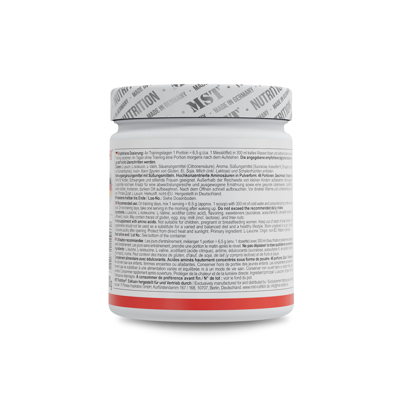 MST® BCAA Zero Полуниця-Ківі 300 грамів (46 порцій) — це високоякісна формула амінокислот з розгалуженим ланцюгом (branched-chain amino acids), яка включає лейцин, ізолейцин та валін у перевіреній пропорції 2:1:1. Ці амінокислоти складають до 40% м’язової тканини та є ключовим фактором росту, відновлення й захисту м’язів.