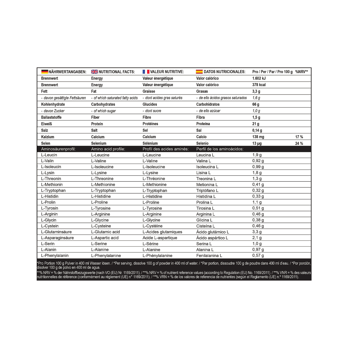 Дієтична добавка, вуглеводно-білковий концентрат з підсолоджувачами. Цей продукт не призначений для тривалого харчування і не повинен використовуватися як заміна збалансованого, різноманітного харчування та здорового способу життя. Берегти від дітей! Після відкриття, зберігати в прохолодному та сухому місці, вжити до та номера партії: дивіться на дні банки. Берегти від прямого тепла та світла.