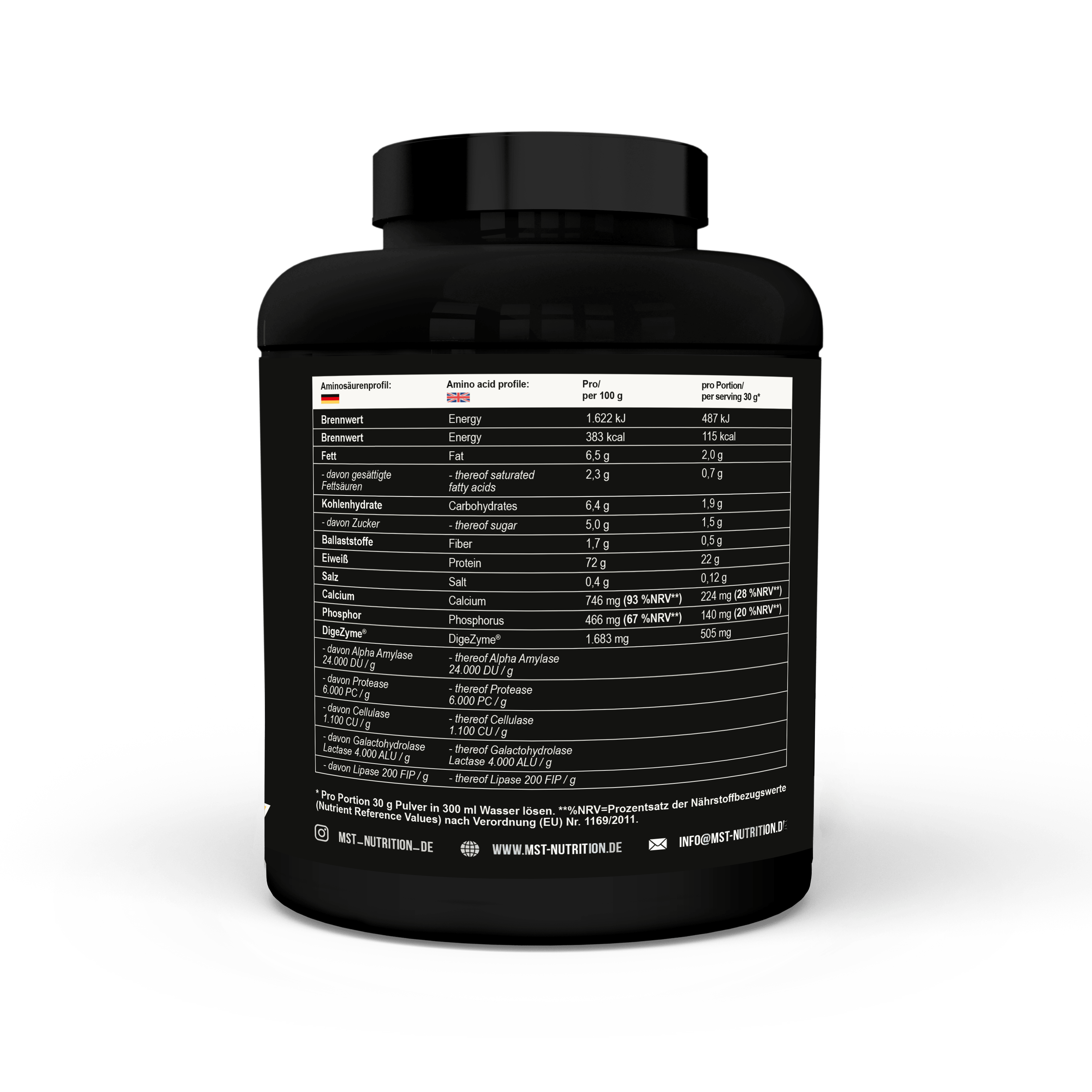 MST® BEST WHEY PROTEIN – це більше, ніж просто джерело білка! MST® BEST WHEY PROTEIN – це 73% високоефективного концентрату сироваткового білка, який виготовлений з сивароткових білків Volactive ® UltraWhey 80 та має у своєму складі ферменти для покращення травлення DigeZyme®.