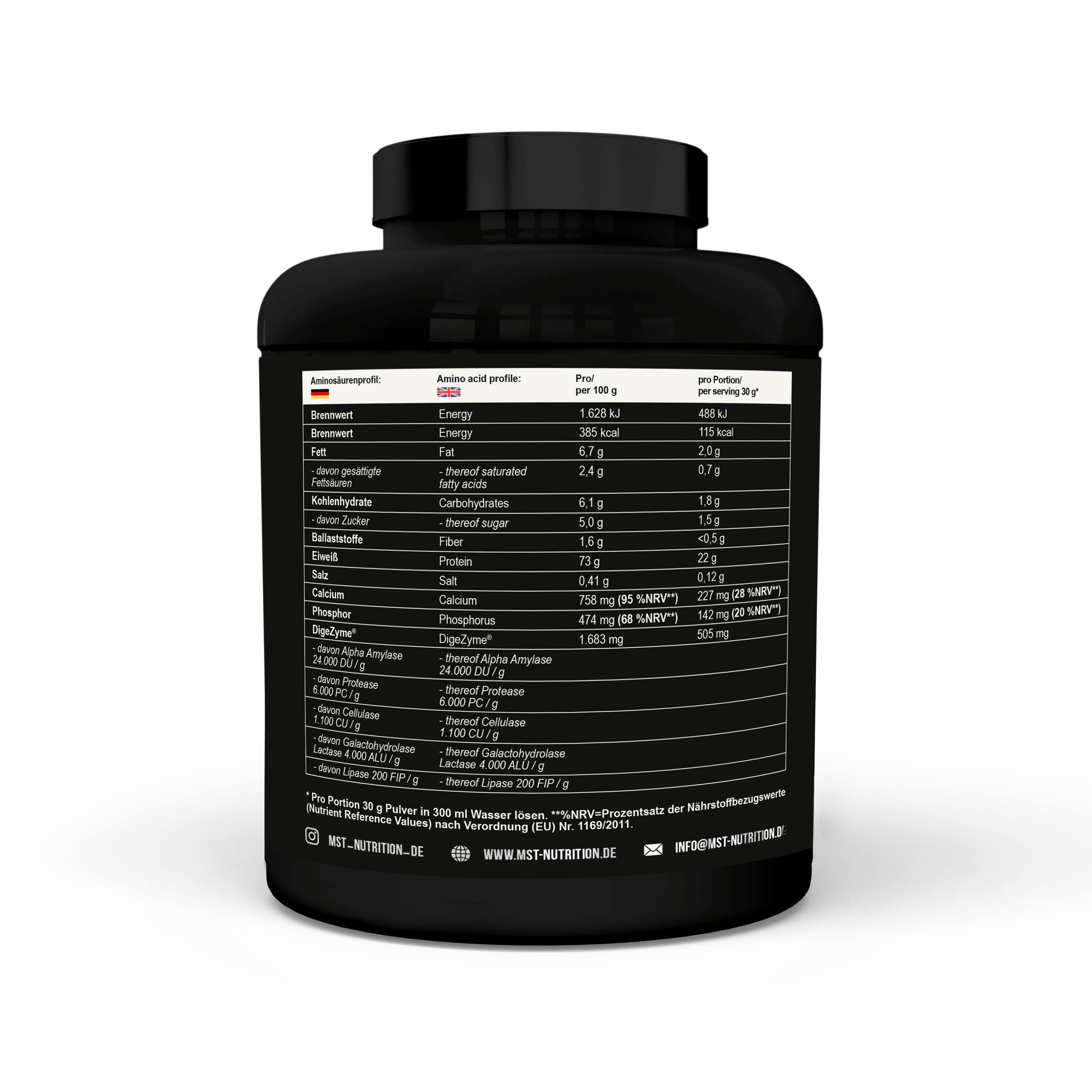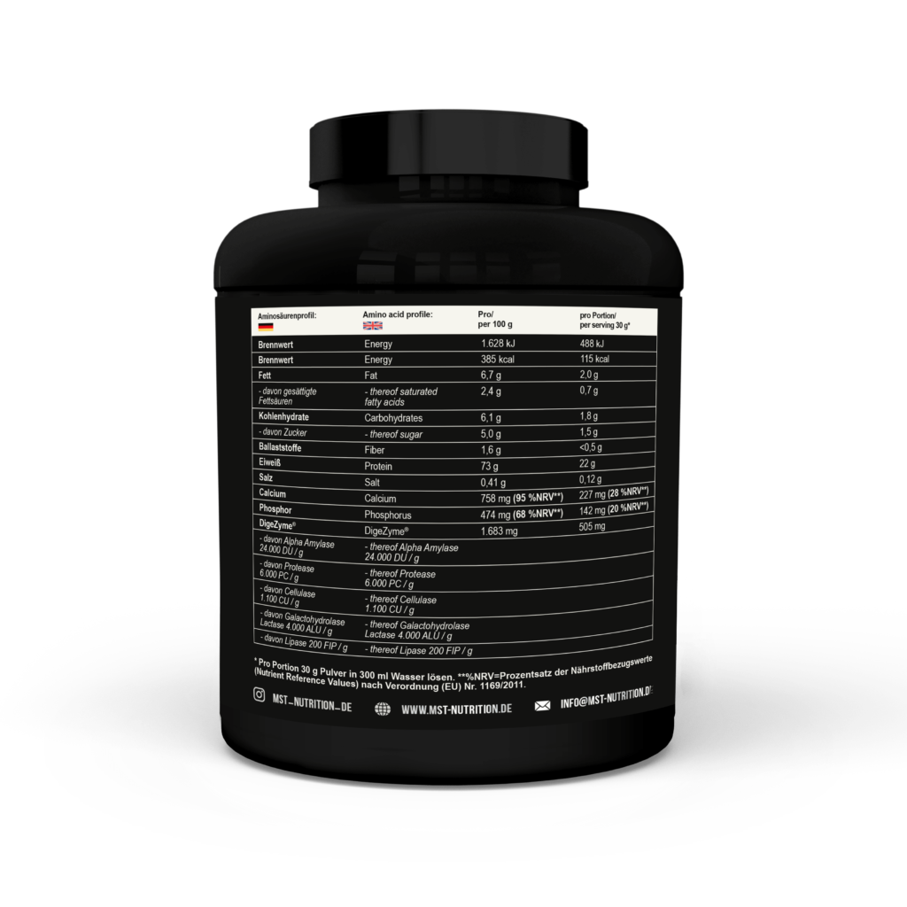 MST® BEST WHEY PROTEIN – це більше, ніж просто джерело білка! MST® BEST WHEY PROTEIN – це 73% високоефективного концентрату сироваткового білка, який виготовлений з сивароткових білків Volactive ® UltraWhey 80 та має у своєму складі ферменти для покращення травлення DigeZyme®.