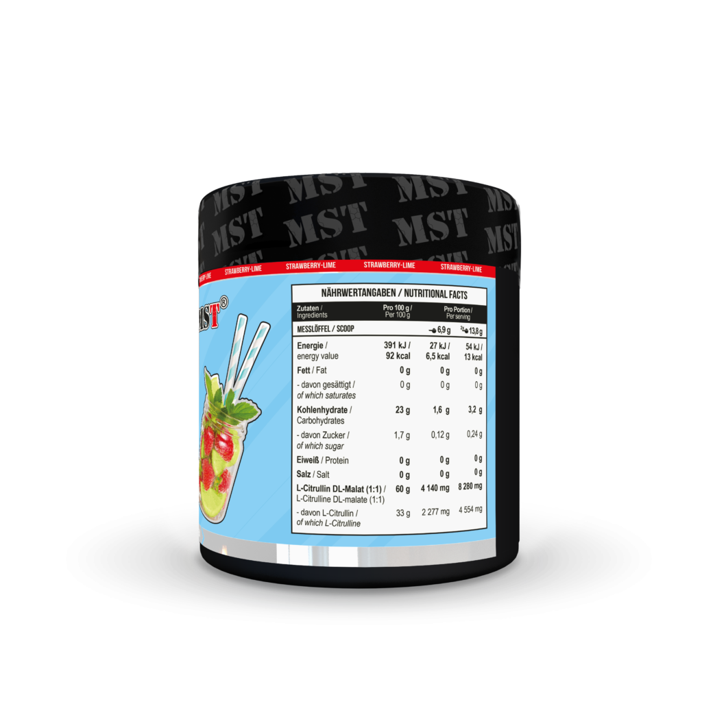 MST® Citrulline PUMP – розроблений на основі однойменної амінокислоти. У кожній порції знаходиться 4140 мг біодоступного Цитрулліна Малата, який швидко засвоюється і має величезний перелік біологічних ефектів.