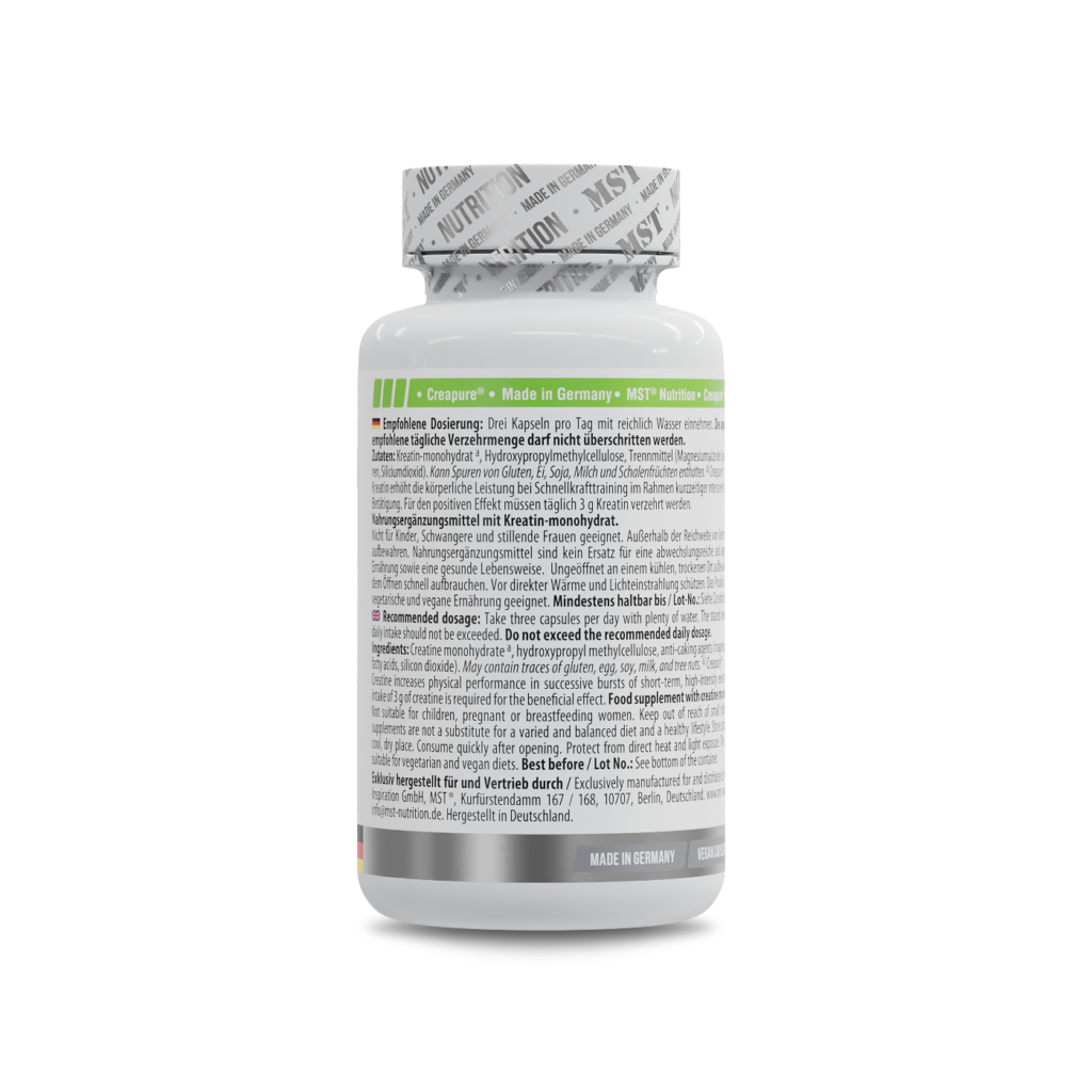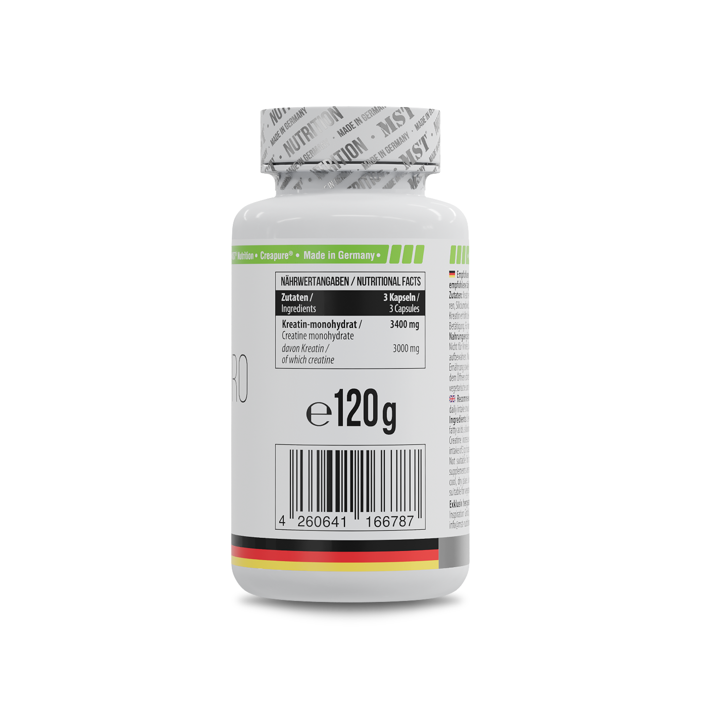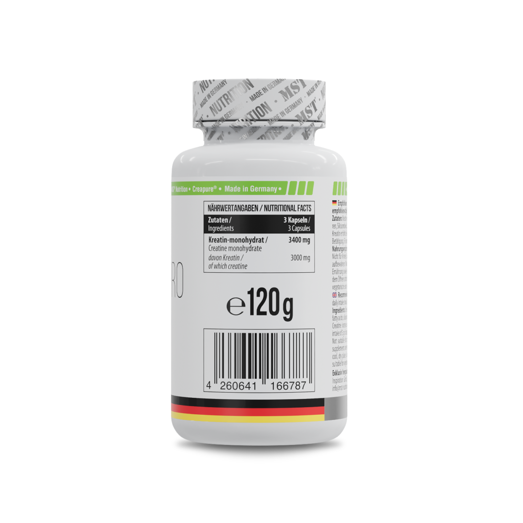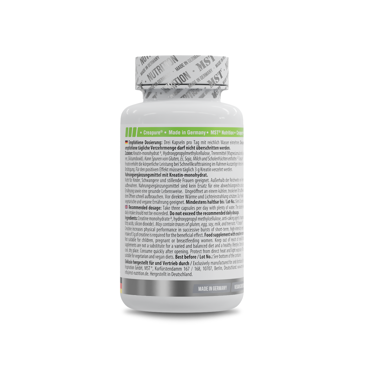 MST® Creatine Pro Creapure® 90 caps – це високоякісний креатин моногідрат у капсулах, який підвищує силові показники, витривалість і створює умови для більш ефективного росту м’язів.