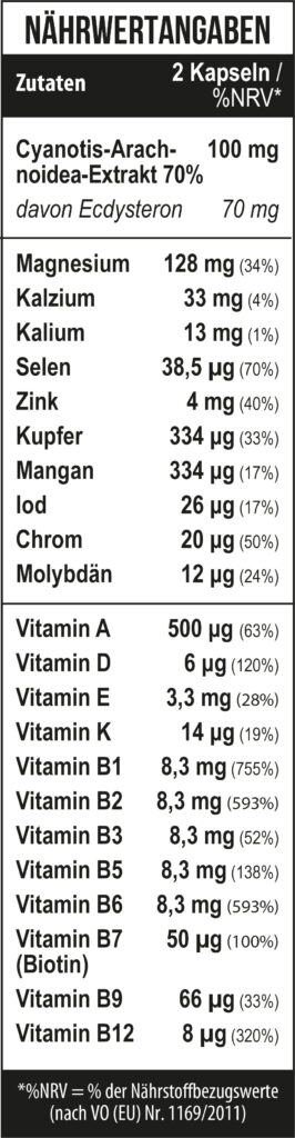 • Екдистерон – зміцнює імунітет! За рахунок повного набору вітамінів та мінералів (таких як цинк та вітамін С) плюс фітоекдістероідов.
