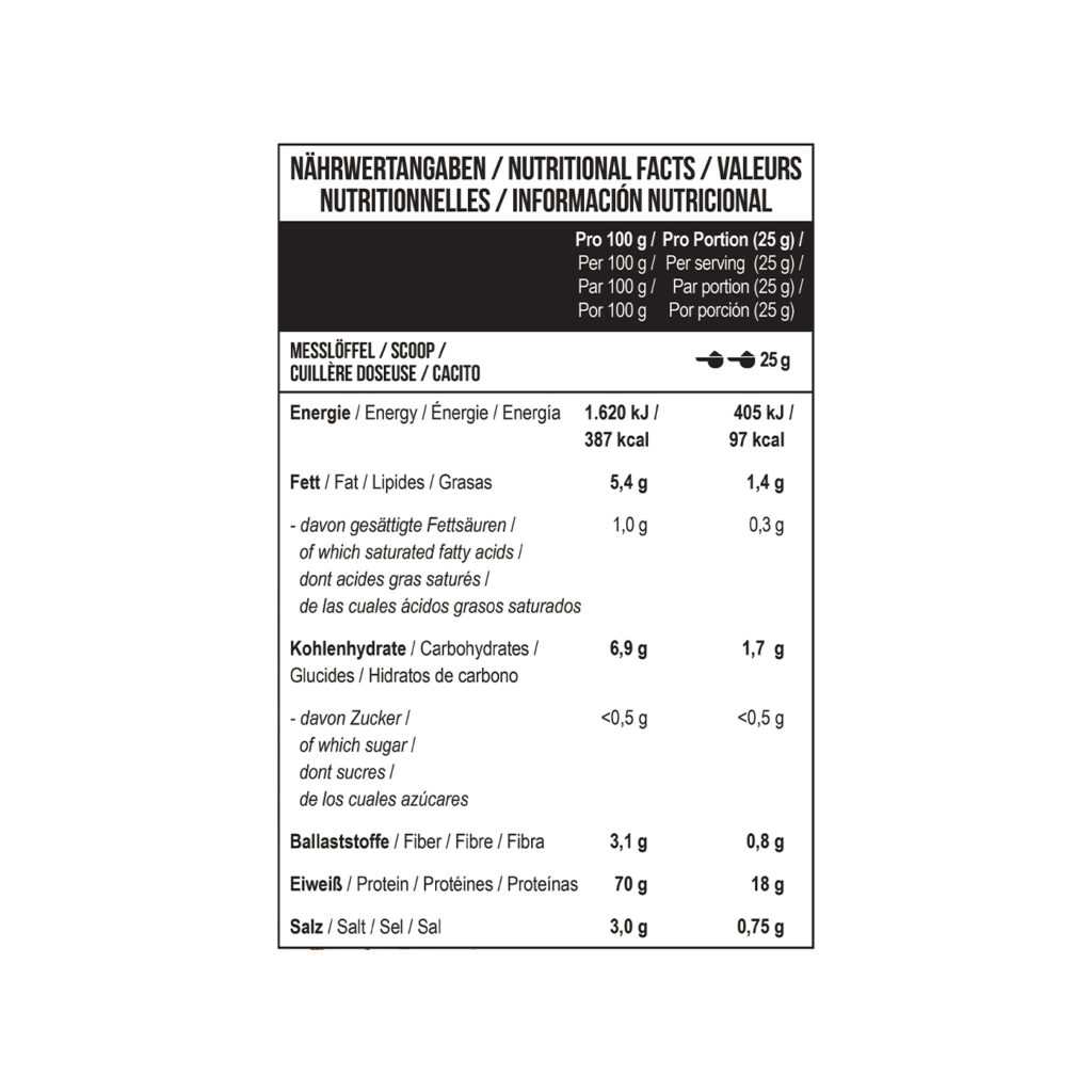 У кожній порції міститься 18 g білка, що швидко засвоюється, і всього 97 kKal. Мінімум жирів та вуглеводів у складі, повністю відсутній цукор.
