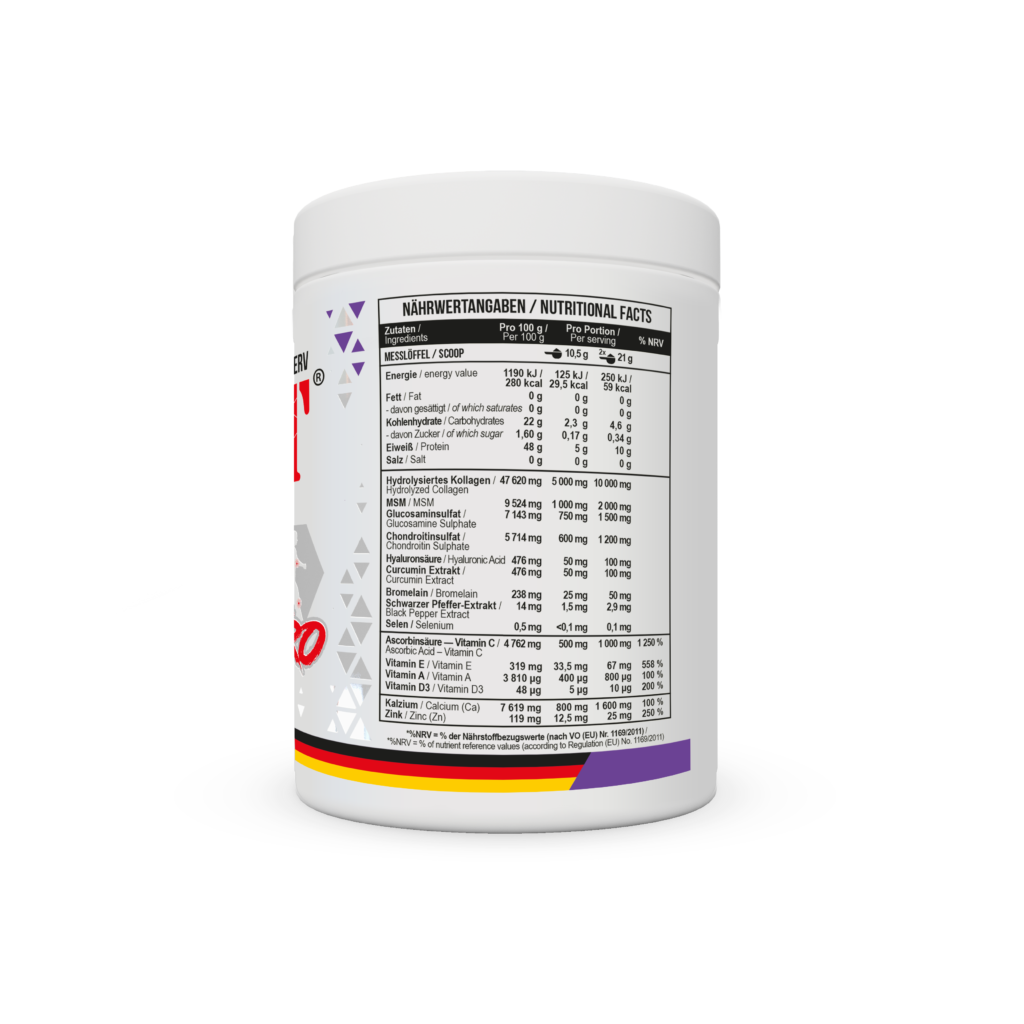 Рекомендується змішувати 10,5 г (1 мірну ложку) з великою кількістю рідини (300 мл). Використовуйте через 30 хвилин після сніданку. Тривалість курсу може варіюватися від 2 до 3 місяців залежно від ваших цілей і стану суглобів. Для досягнення максимального ефекту важливо дотримуватися регулярного прийому.