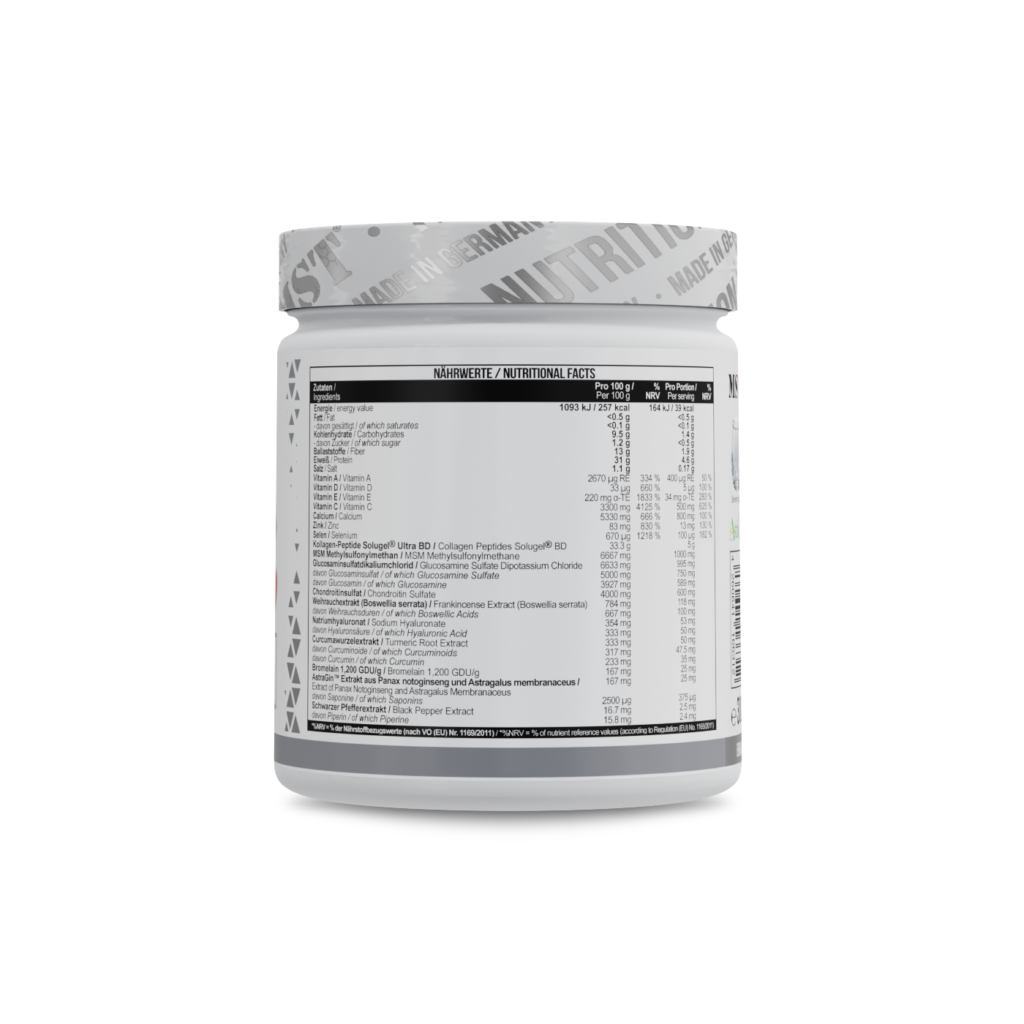 Solugel® — це високоякісний гідролізований колаген, вироблений бельгійською компанією PB Leiner. Відомий своєю чудовою біодоступністю та нейтральним смаком, цей колаген швидко всмоктується, стимулює вироблення власного колагену та позитивно впливає на щільність хрящової тканини, гнучкість зв’язок і еластичність сухожиль.