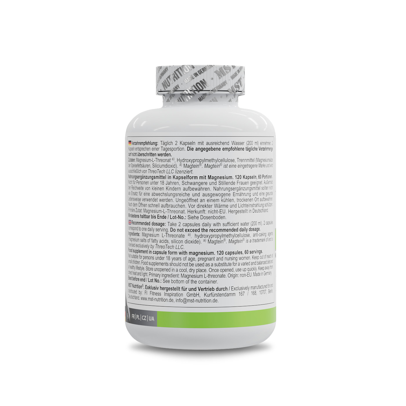 MST® Magnesium L-Threonate — це інноваційна форма магнію з високою біодоступністю, яка покращує когнітивну функцію, фокус, сон і допомагає знизити рівень тривожності. Формула заснована на Magtein® — запатентованій формі магнію L-треонату, яка єдина вміє проникати через гематоенцефалічний бар’єр і підвищувати рівень магнію саме в мозку.