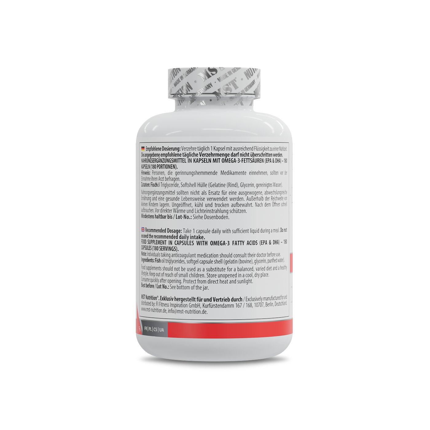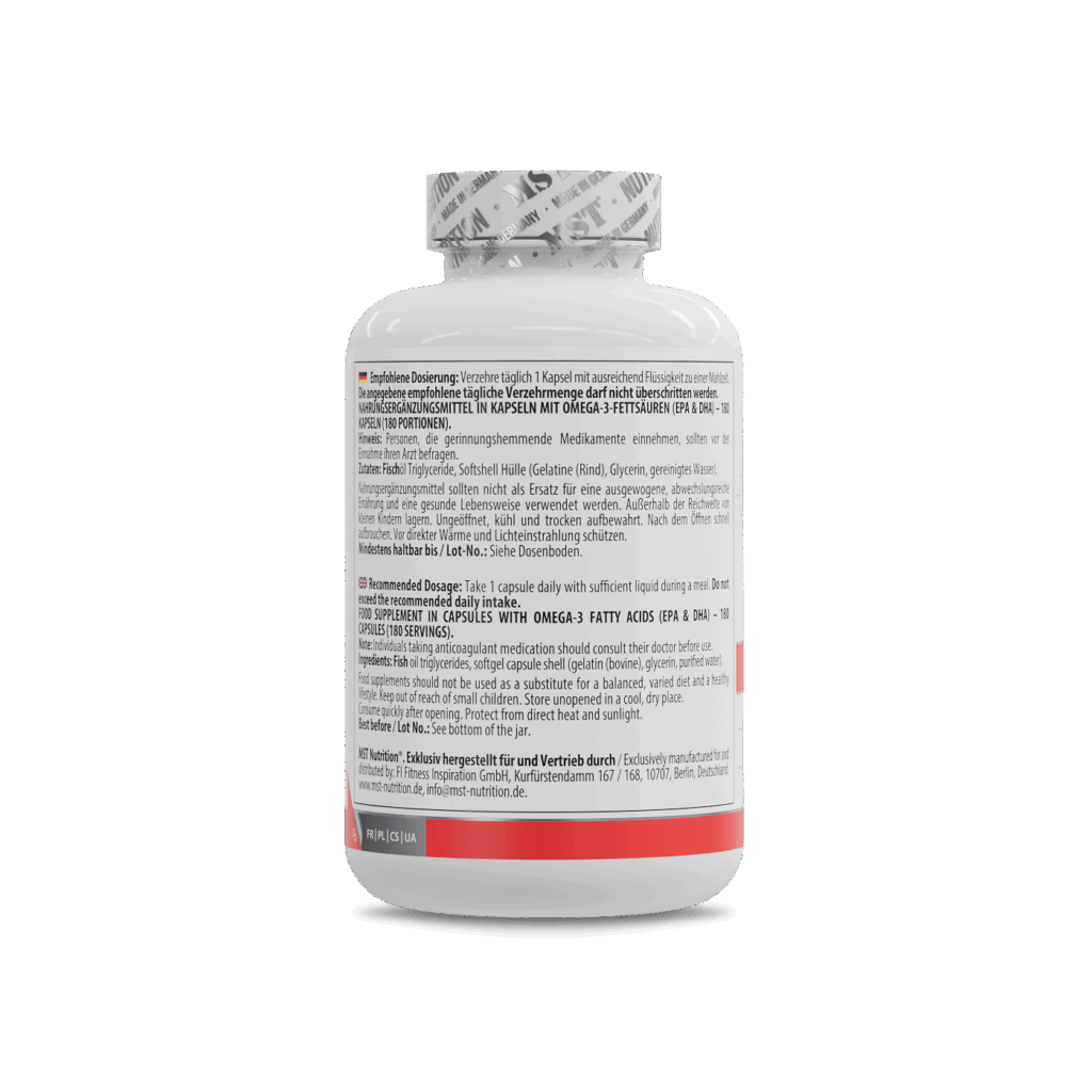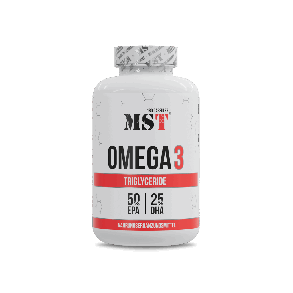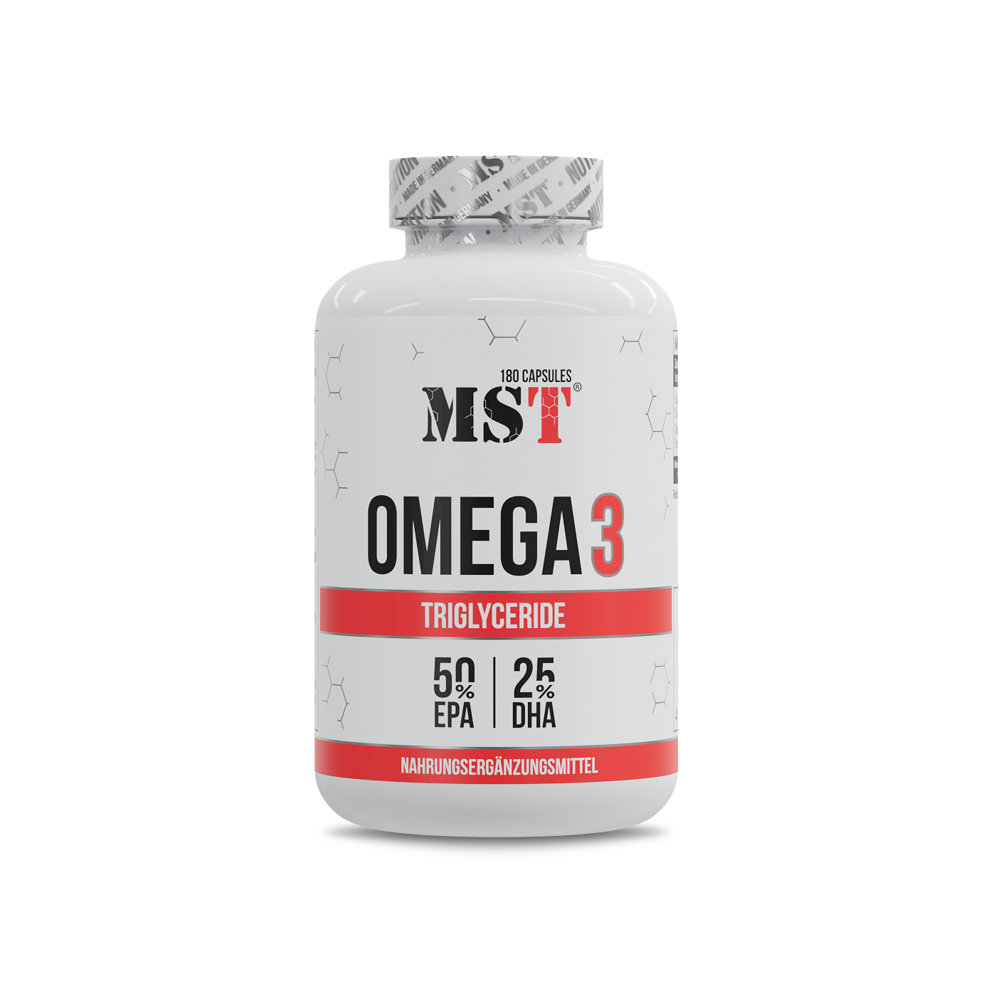 MST® Omega 3 Triglyceride 75% Триглцериди Омега 180 капсул – це додаткове джерело тригліцеридної форми поліненасичених жирних кислот Омега 3 (ейкозапентаєнової і докозагексаєнової кислот), саме так вона знаходиться в природному вигляді в рибі. У формі природних тригліцеридів Омега3 засвоюється організмом приблизно на 70-98%.