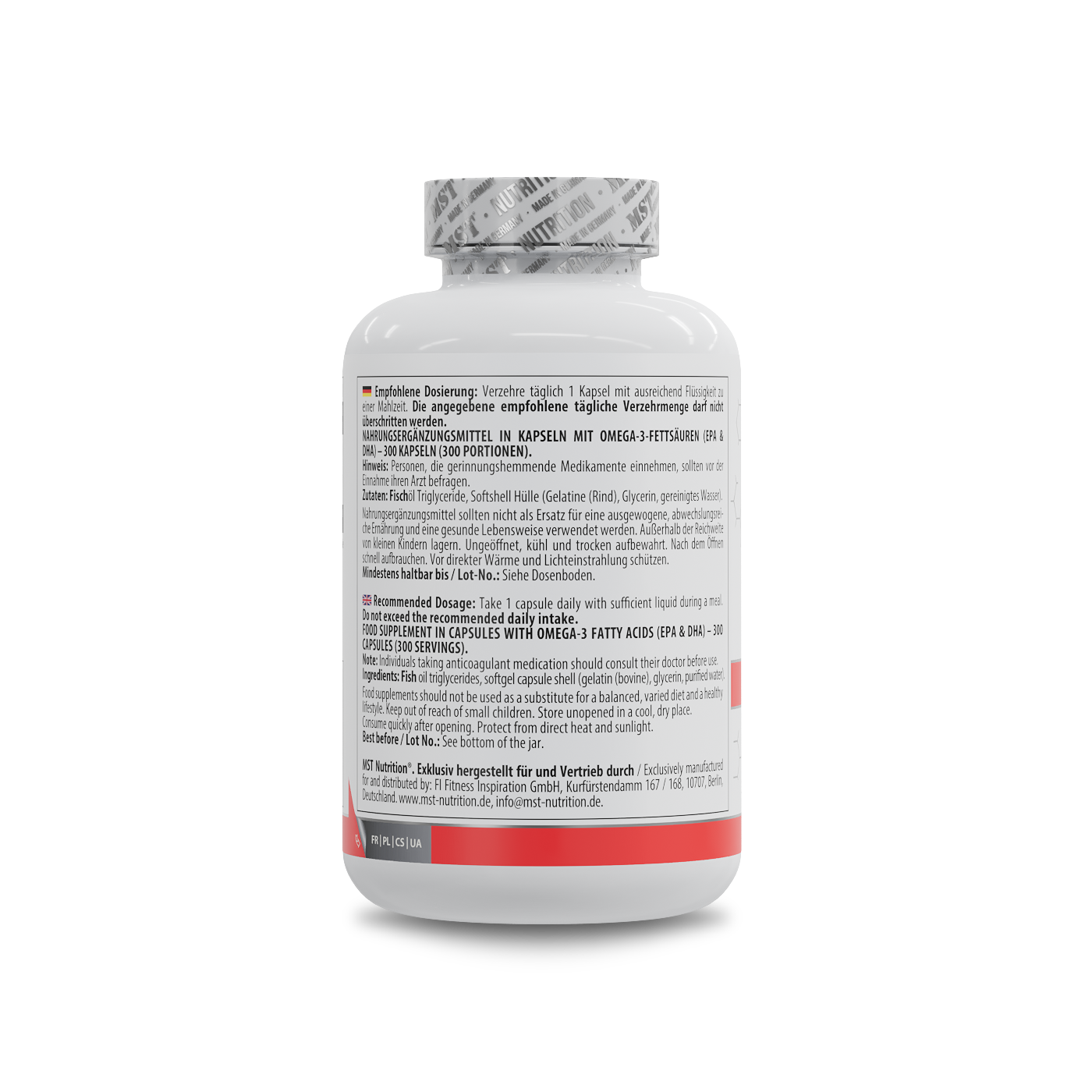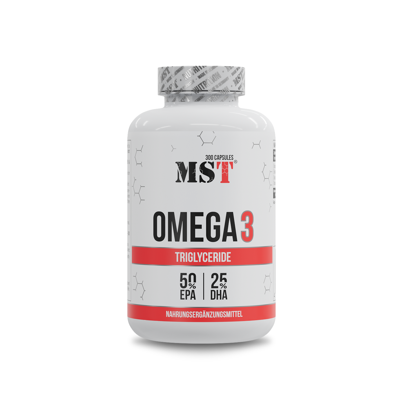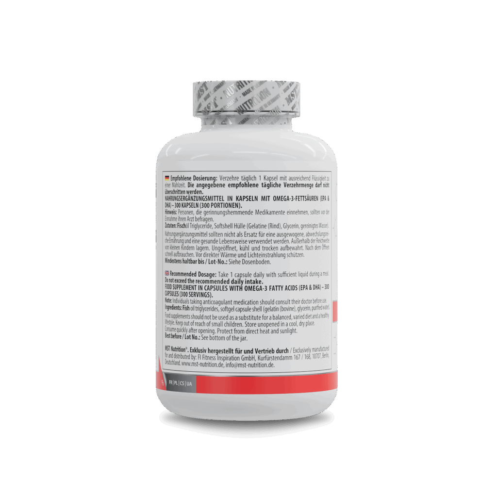 MST® Omega 3 Triglyceride 75% Триглцериди Омега 300 капсул – це додаткове джерело тригліцеридної форми поліненасичених жирних кислот Омега 3 (ейкозапентаєнової і докозагексаєнової кислот), саме так вона знаходиться в природному вигляді в рибі. У формі природних тригліцеридів Омега3 засвоюється організмом приблизно на 70-98%.
