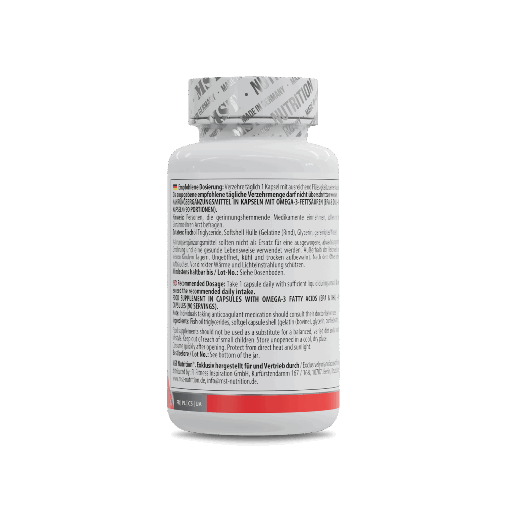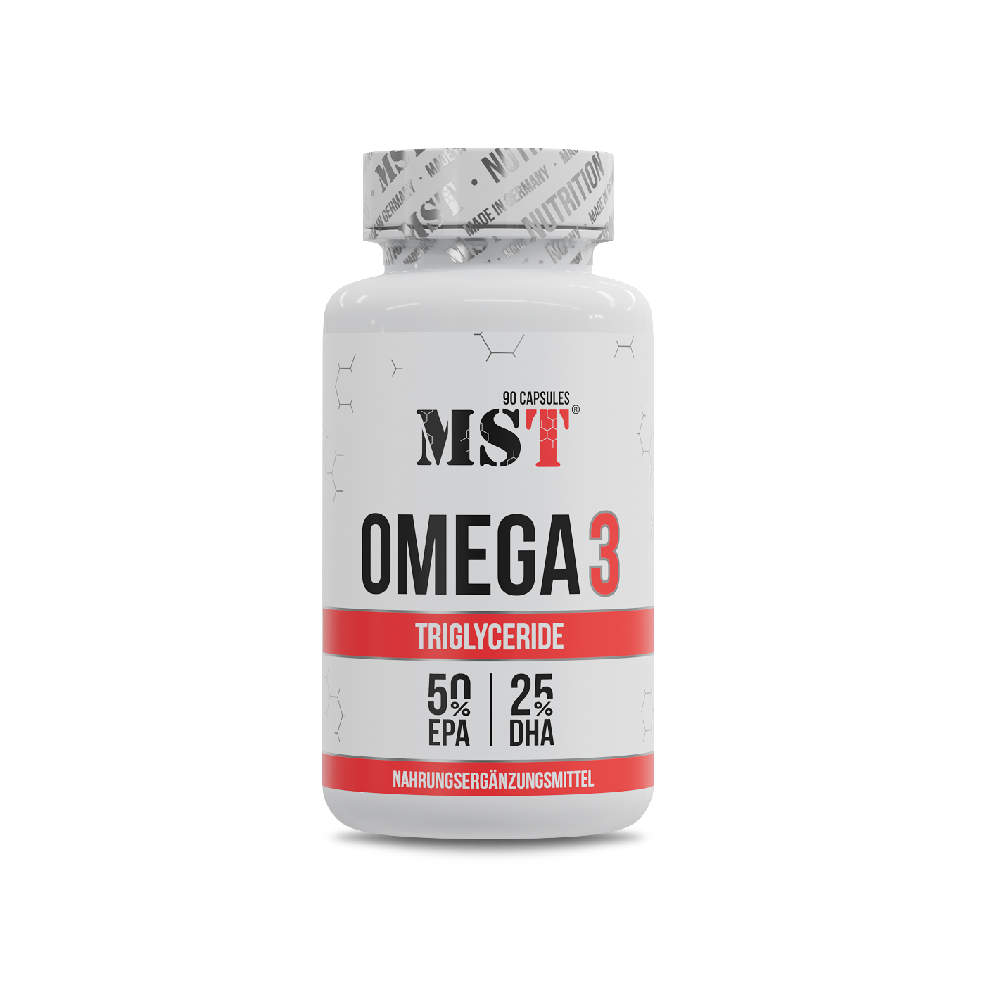 MST® Omega 3 Triglyceride 75% Триглцериди Омега 90 капсул – це додаткове джерело тригліцеридної форми поліненасичених жирних кислот Омега 3 (ейкозапентаєнової і докозагексаєнової кислот), саме так вона знаходиться в природному вигляді в рибі. У формі природних тригліцеридів Омега3 засвоюється організмом приблизно на 70-98%.