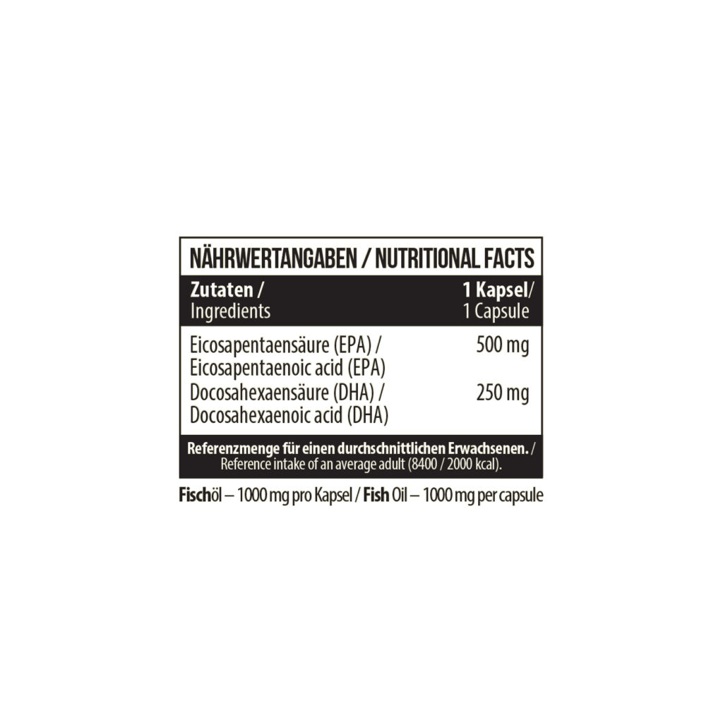 • Висока доза омега-3 жирів, вміст EPA і DHA в 1 капсулі досягає 750 мг (EPA 500 мг + DHA 250 мг), що дозволяє ефективно заповнювати нестачу Омега-3 в організмі людини (необхідний мінімум – 250-500 мг/день).