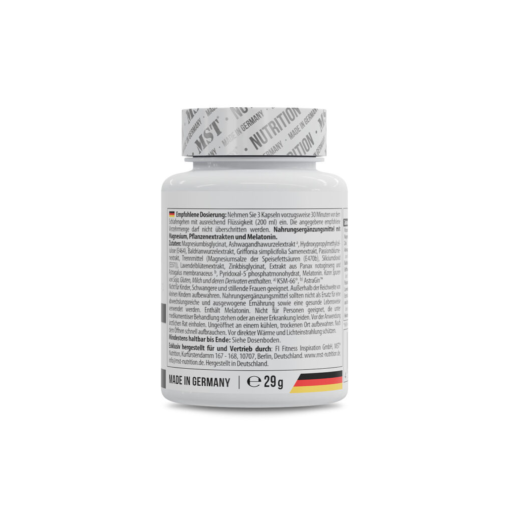 MST® Sleep IQ with Melatonin 30 капсул — це високотехнологічний комплекс, розроблений у Німеччині (MADE IN GERMANY), призначений для нормалізації нічного відпочинку та підтримки нервової системи. Унікальна формула поєднує стандартизовані рослинні екстракти, адаптогени, 5-HTP, мелатонін та ключові мікроелементи, які цілеспрямовано працюють на поліпшення вашого нічного відновлення та зниження реакції на стресові фактори.