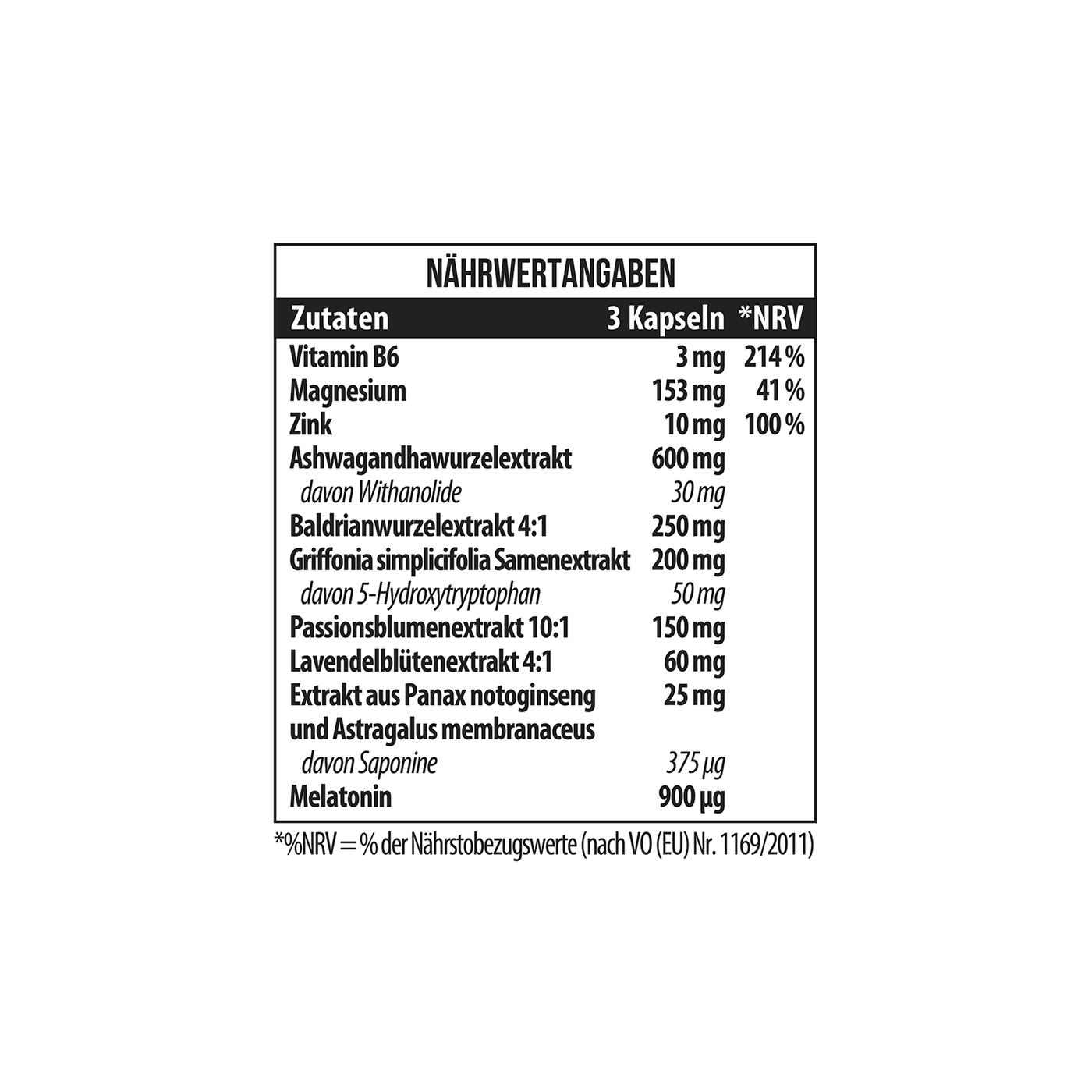• Дія Вітанолідів (30 мг): Активні компоненти Ашваганди, вітаноліди, сприяють зниженню рівня кортизолу (гормону, що виробляється у відповідь на напруження) та підтримують загальне психічне благополуччя, що є критичним для якісного нічного відновлення. Дослідження показують, що Ашваганда може покращувати різні параметри сну, включаючи якість, ефективність та зменшення тривоги.