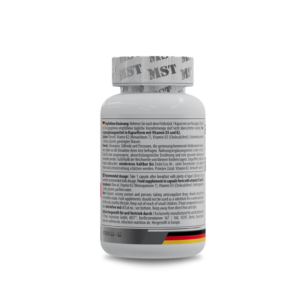 Комбінація вітамінів D3 і K2 у формі MK-7 забезпечує краще засвоєння та тривалу дію, що дозволяє отримувати максимальну користь від прийому добавки. Купуйте MST® Vitamin D3 + K2 MK-7 для отримання найкращих результатів. Також рекомендується купити вітамін К2 МК-7, щоб забезпечити максимальну біодоступність і ефективність.