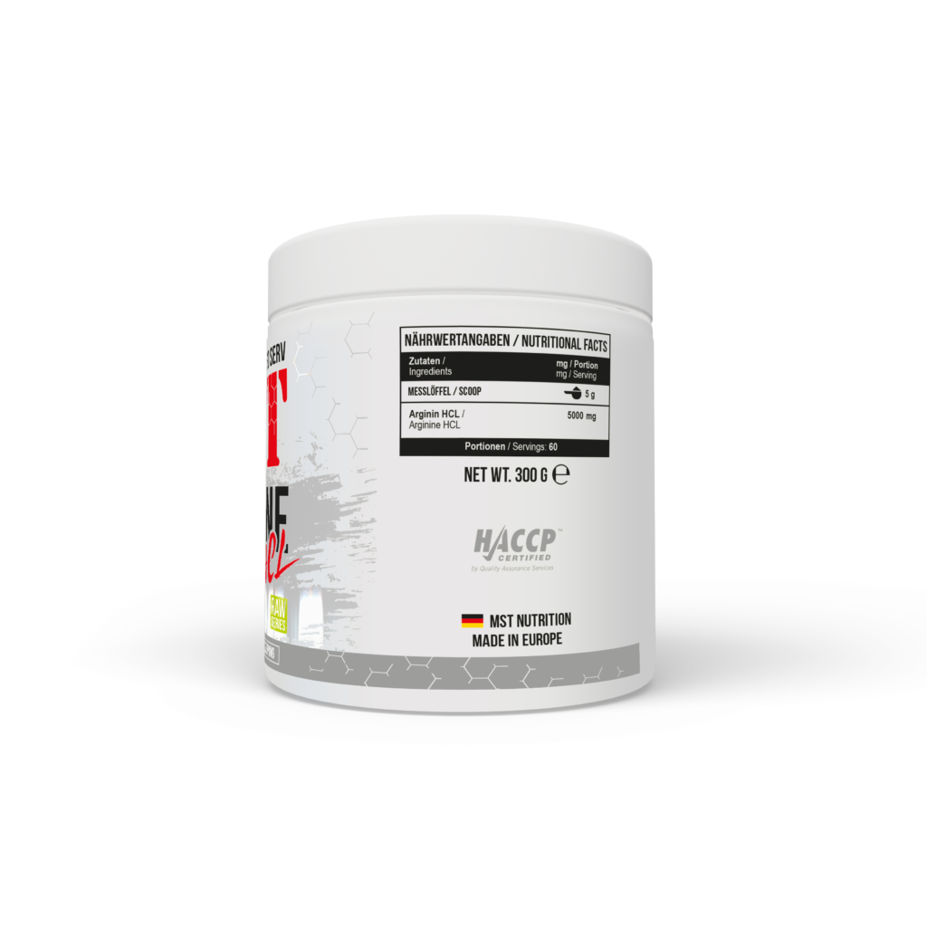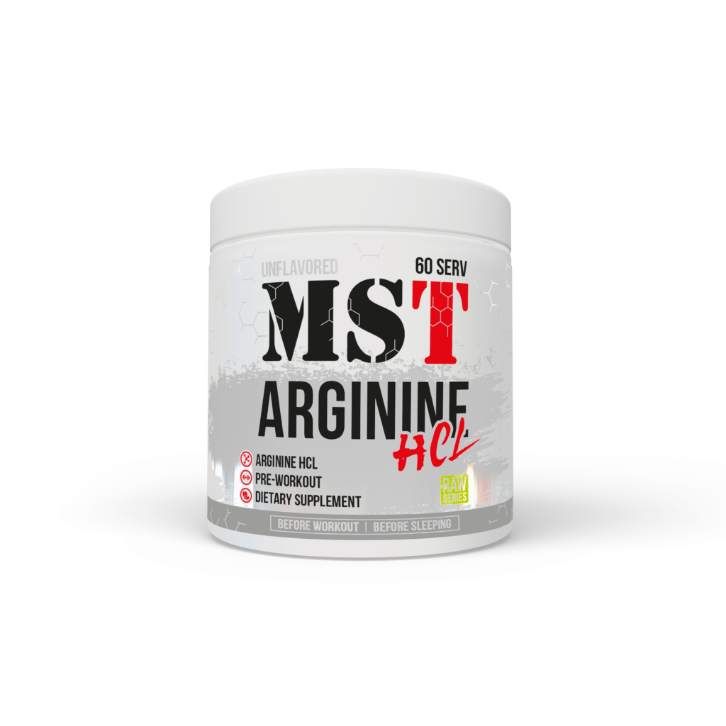 MST ARGININE HCL отвечает за выработку гормона роста, повышение уровня креатина в мышцах, ускорение жирового обмена, удаление токсинов из организма. Он увеличивает количество окиси азота – чем значительно увеличивает кровоток, максимизирует доставку кислорода к каждой клеточке организма. Аргинин является условно незаменимой кислотой, потому что он может синтезироваться в организме человека. Однако организм не может произвести достаточное количество аргинина, и некоторое его количество должно поступать с пищей или со спортивным питанием.