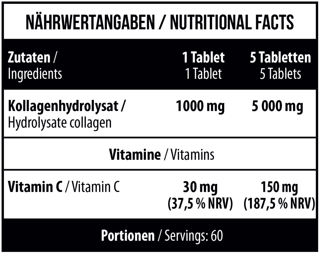 • 60 порций по 5 таблеткок (300 таблеток в банке) достаточно для ежедневного приема в течение двух месяцев, за счет большого количества таблеток цена выходит самой выгодной на рынке коллагенов спортивного питания.