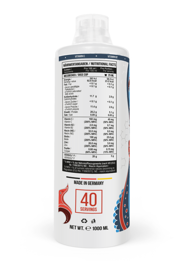 За счет использования высококачественных пептидов коллагена Verisol, которые обогащены биотином, цинком, медью, витамином С и остальными витаминами и минералами, Fisch kollagen peptide Verisol® + Biotin максимально усваивается и способствует выработке собственного коллагена.