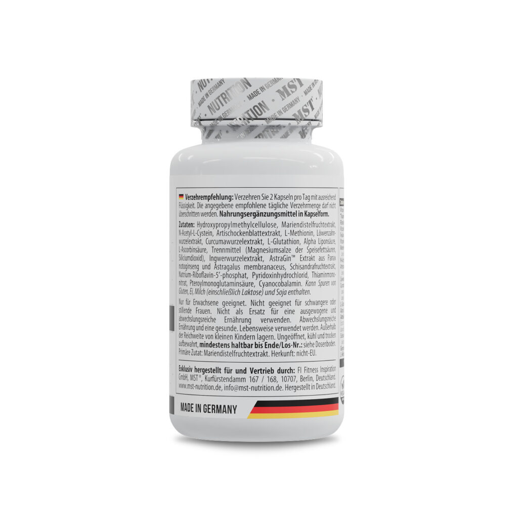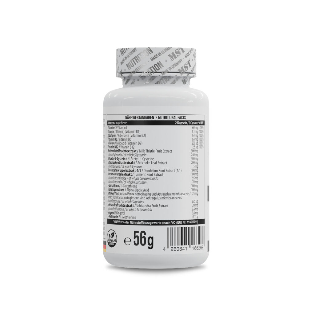Гидроксипропилметилцеллюлоза, экстракт плодов расторопши, N-ацетил-L-цистеин, экстракт листьев артишока, L-метионин, экстракт корня одуванчика, экстракт куркумы, L-глутатион, альфа-липоевая кислота, экстракт имбиря, AstraGin®, экстракт плодов шизандры, витамины группы B и др.