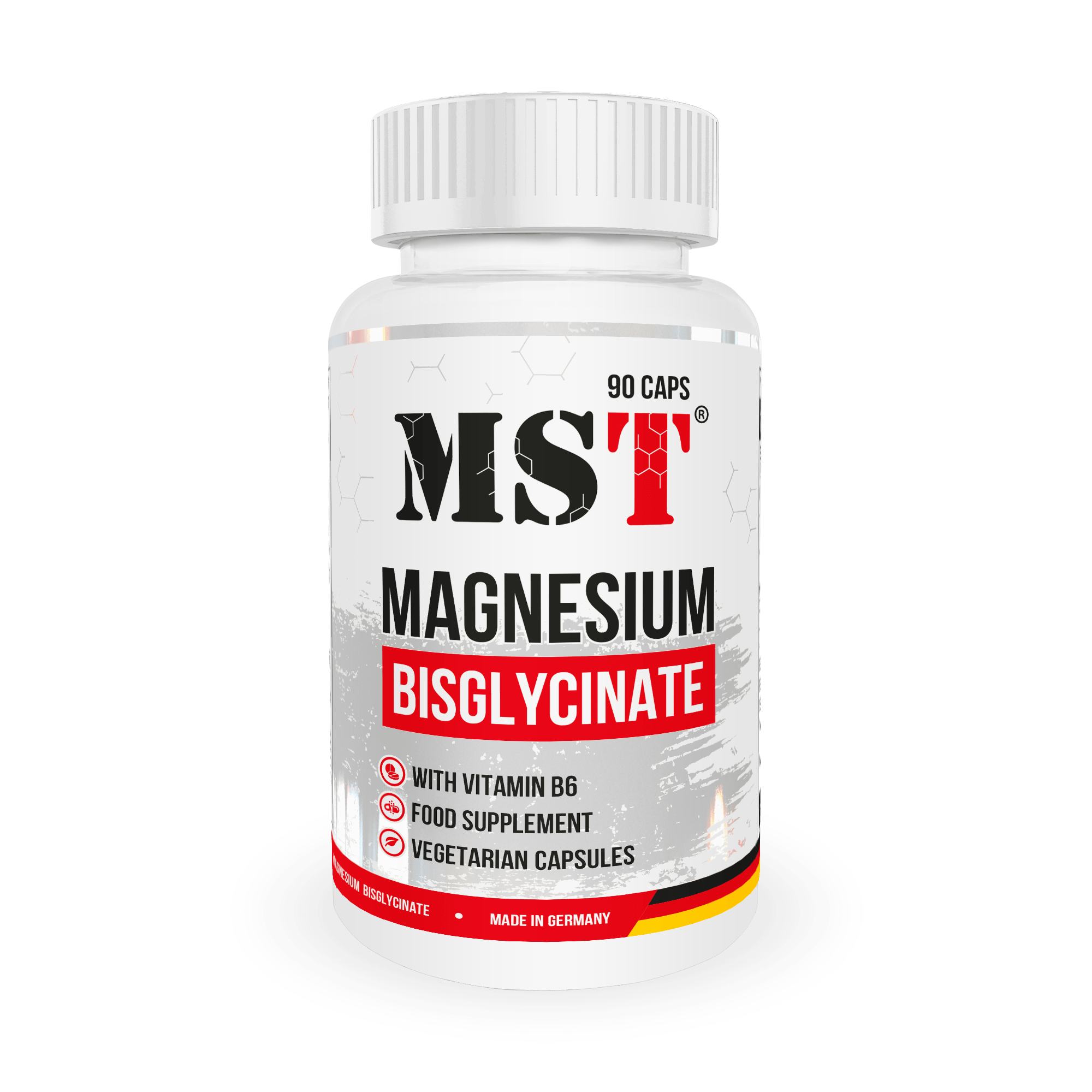 MST® Magnesium BISGLYCINATE Магний бисглицинат + витамин B6 90 капсул – доступный магний в бисглицинатной форме для максимального усвоения.