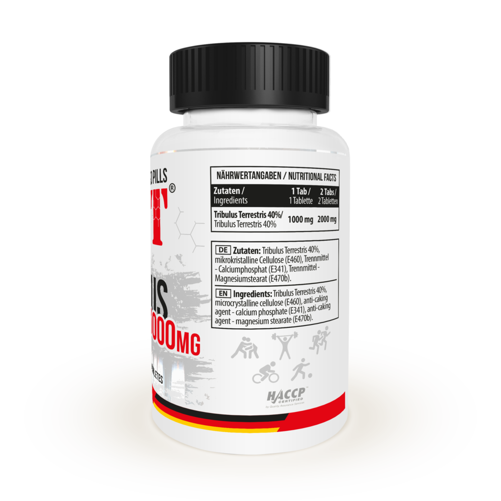 Трибулус Террестрис 40%, микрокристаллическая целлюлоза (E460), антислипывающее средство – фосфат кальция (E341), средство против слеживания – стеарат магния (E470б).